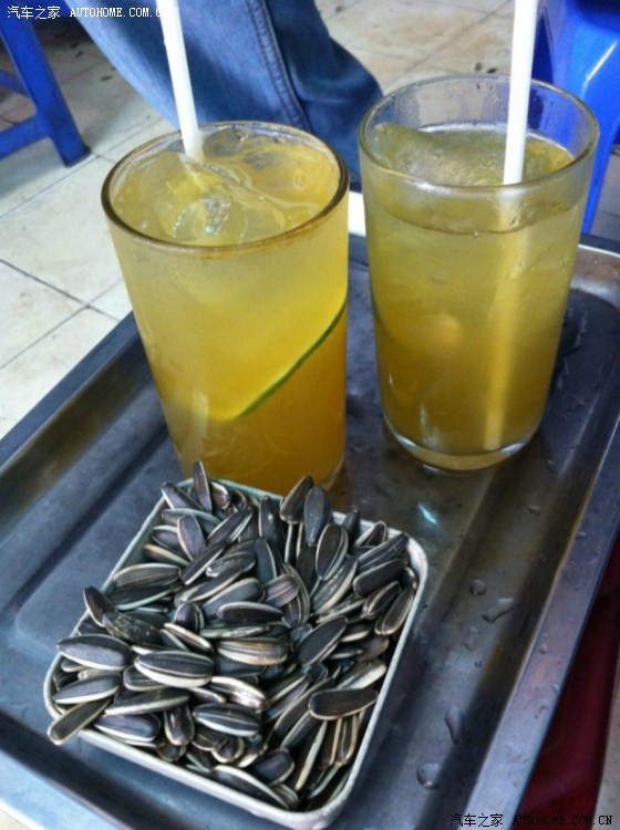 看到周围很多人坐在马路边嗑着瓜子喝着茶,我们也不免俗的来了一杯.1万盾一杯的清爽绿茶.味道很不错.