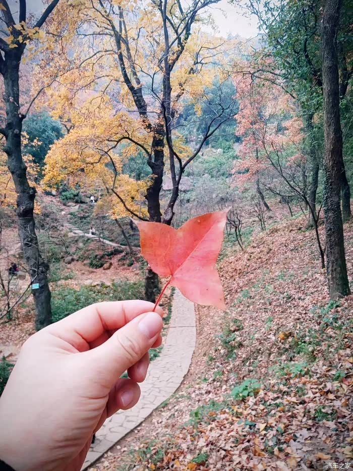 南京栖霞山每到秋冬季节,呈偏的枫叶就会格外的红艳,周末正好有时间开着车带着家人一起来登山看美景。