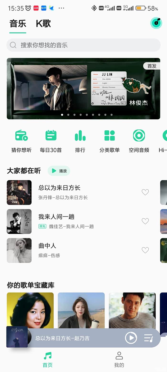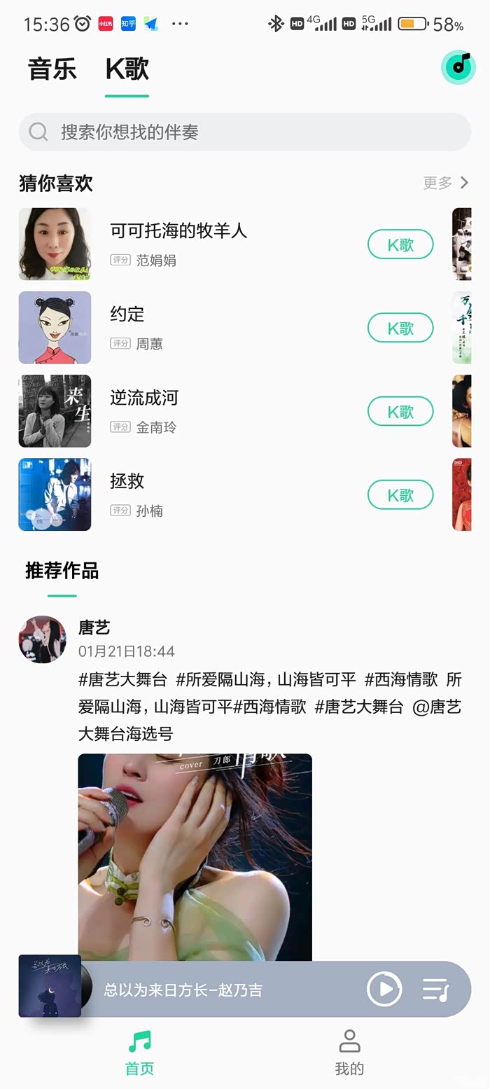 1.连接蓝牙,使用具有K歌功能的音乐播放软件,并打开,找到喜欢的歌曲。