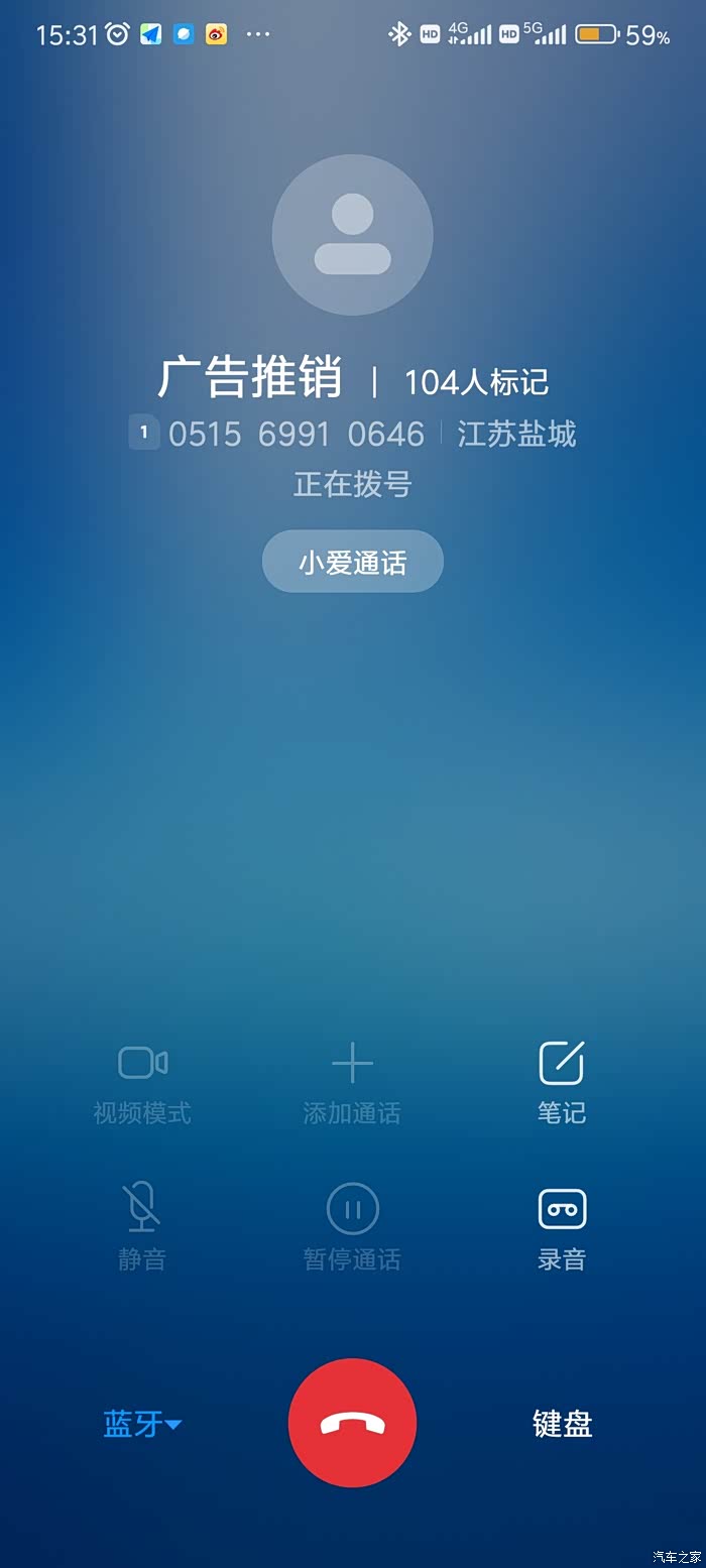 3.蓝牙连接时,用手机拨打电话,车机端也会同步显示拨打电话。