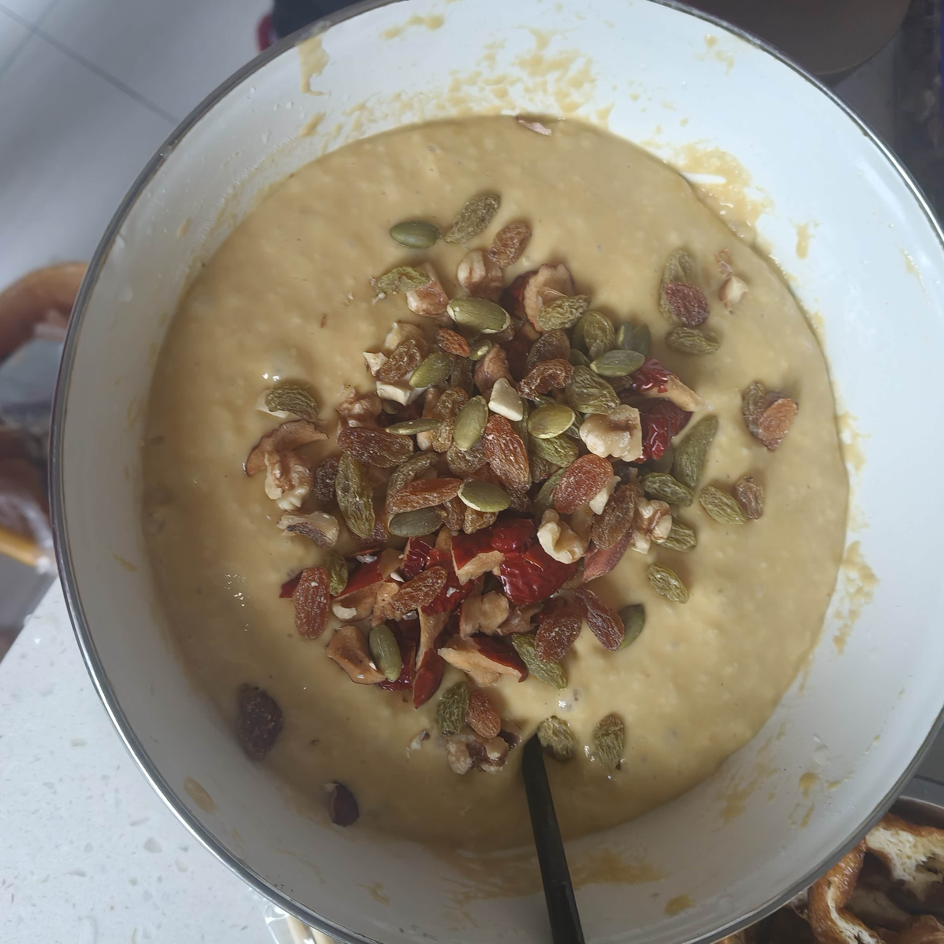 最后,面粉团变成了坚果发糕了,看起来蛮不错的,味道也香喷喷的。