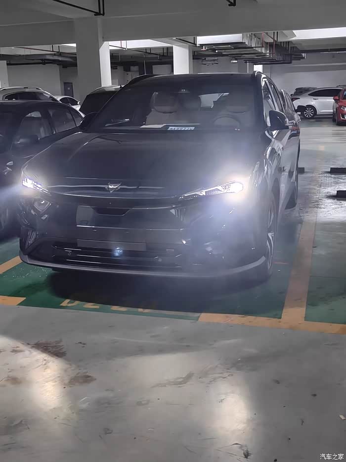 黑色的整体质感比较厚重,阳光下和暗光颜色呈现的不一样,阳光下有点偏蓝色。大灯的狐狸眼还是比较有特色的,然后车子整体外形比较方正。总体评价不丑,也不浮夸。