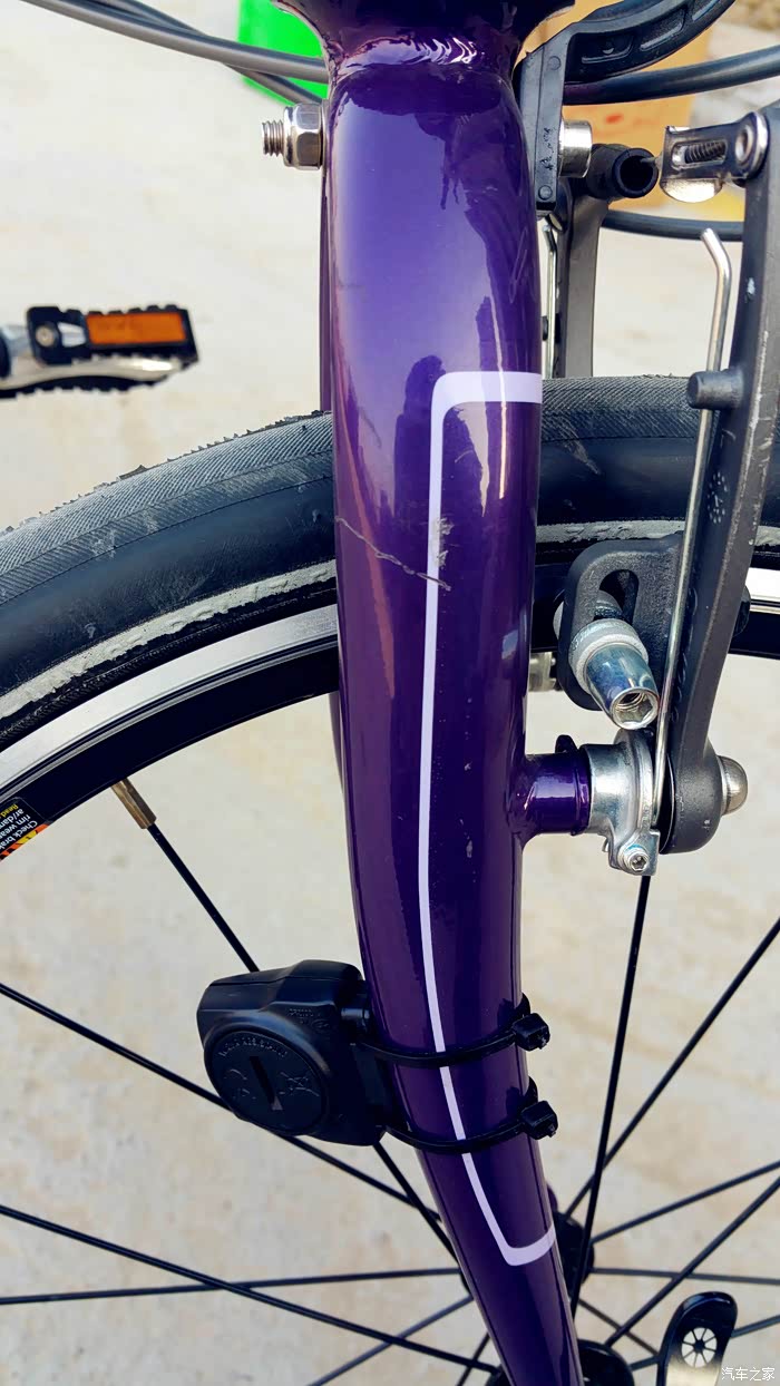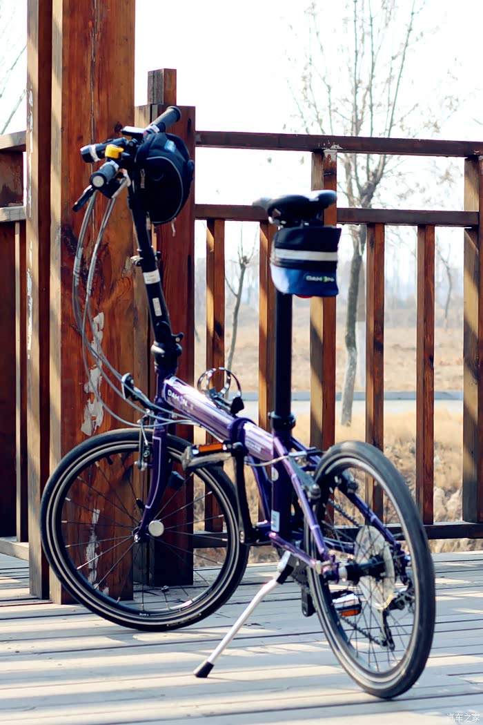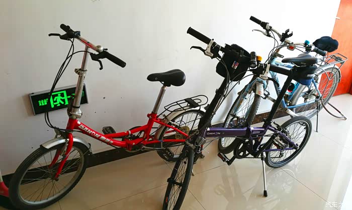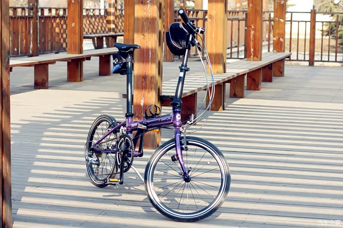 ,选这玩意跟选车也差不多,合适的就那几个牌子,确定预算后就看品牌、口碑和性价比了!折叠车里最知名的品牌当属大行了,现在家里还有一辆大行车在服役,那是我高三那年买的,我用了一年后来出去上大学和研究生了车子就归我母亲骑了,到现在7年过去这辆车子就因为轮胎磨损严重换了一次轮胎,车座海绵不行了换了一个车座,还换过刹车皮,别的零件一个坏的都没有,所以这次买车还是首选大行!先在网上某猫和某东的旗舰店里看了看,大概了解了一下价格,发现现在的大行车价格涨了真不少!网上买了还得自己装,还是去实体店看看吧,趁周末休息就和LD一起去了市里的专卖店。作为比较先去看了看捷安特,他家折叠车不多,但是1000多到3000多的也都有,看完觉得外观还是不如大行,折叠方法貌似也麻烦一点,于是又转到大行专卖店。进店之后说明用途店员推荐P8青春版,我说你们的车名是山寨的华为吗?我表示想要再高端一点的他就推荐了D9,说优惠完是3200,我看了看感觉还是离想要的有点距离,但是价位已经到了心理价位,不想要再贵的了于是又往里走向看看别的型号,这是一辆挂在墙上的紫色小车吸引了我,颜色很特别还带前变速!吊牌价3700多,我问店员这个车子打完折多少钱?他说这是去年的款P18,18速的,就剩这一辆样品了,折扣较大,打完折3200多。我一听这不就是传说中的展车吗?我问这车一直就在这里挂着吗?回答是的,就是展示用没骑过,放了快一年了,要是不在乎是老款那选这个挺合适的!这让我想到了我的小G,也是库存了一年让我便宜买到了,汽车库存的都敢买何况自行车呢?仔细一看漆面有微微的瑕疵,我说3000块钱,行我就骑走!销售小哥打了个电话请示了一下,愉快的就同意了,我拿下来使骑了一下,发现也没什么问题,就是变速器定位不少太准了,让店里给调了一下,销售小哥挺爽快,其他赠品一样不少都给安好!弄好之后因为车里都是东西没地方放了,就放在店里了,第二天坐公交车去店里把车骑回家了。