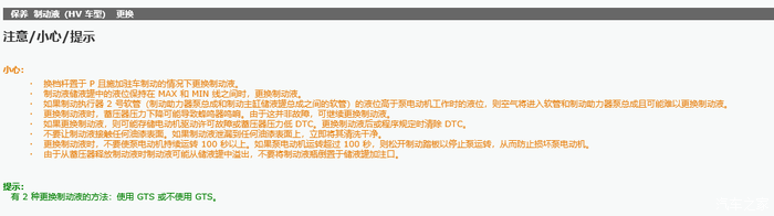 第一个问题的回答是,确实不一样。丰田混动本身的维修手册有两种方法更换刹车油,论坛有人贴出来。其中一种是使用电脑更换,但这种最标准的方法估计大部分4S店都不会使用,还有一种是进入维修模式后更换(估计一些4S店的保养人员也不采用),而是使用其他和油车一样的其他方法。