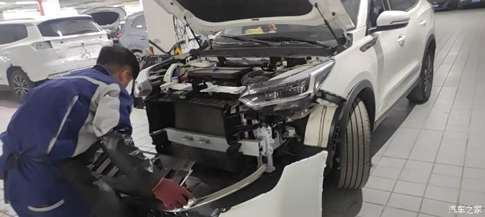 1. 打开引擎盖,拆除前保险杠顶部6颗固定螺丝