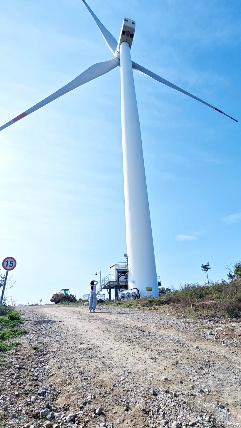 可以前往风电塔下,让娃感受一下风电发电塔有多大
