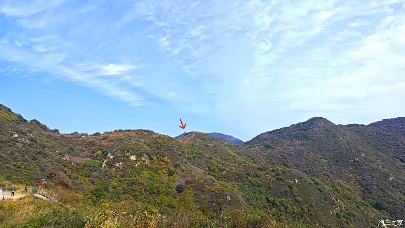 远处红箭头位置为上一个地点,昌平最高峰高楼长城。