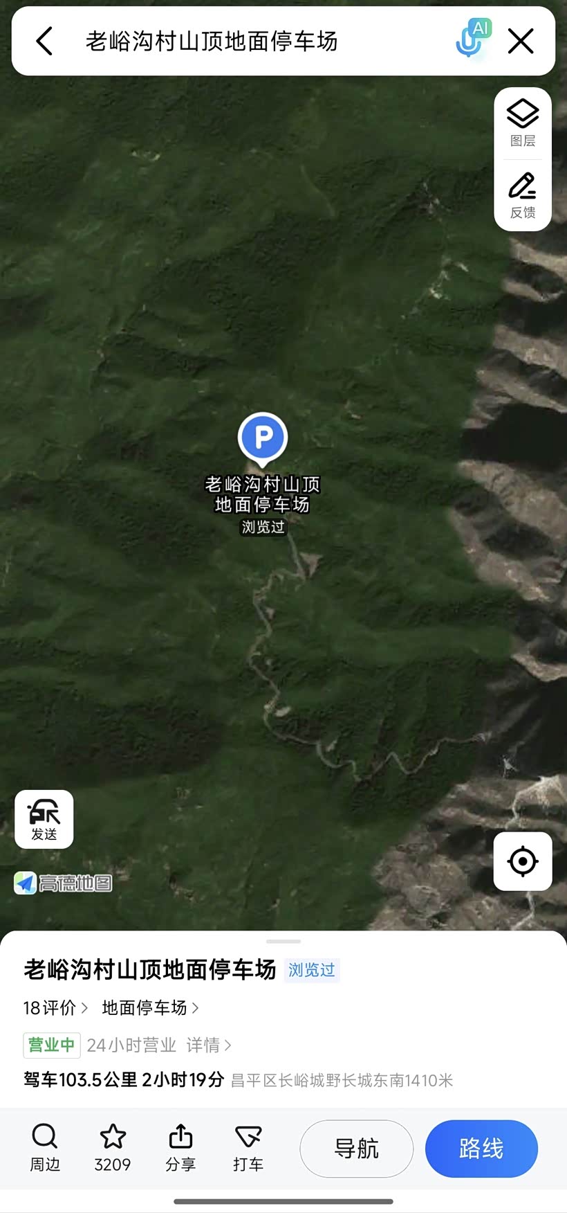 NO.1:导航老峪沟山顶停车场,到这能开车到山顶,你就会看到远方的大风车。