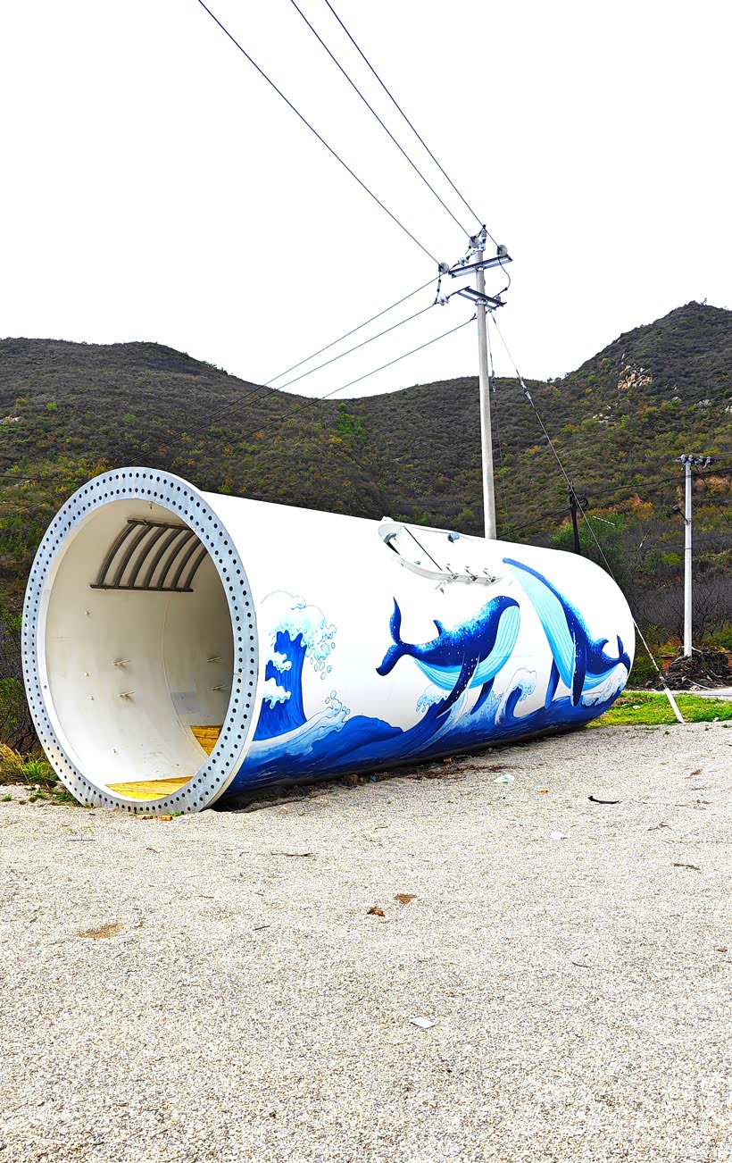 山脚下有一节风力发电凤车,可以让娃进去看看内部构造。