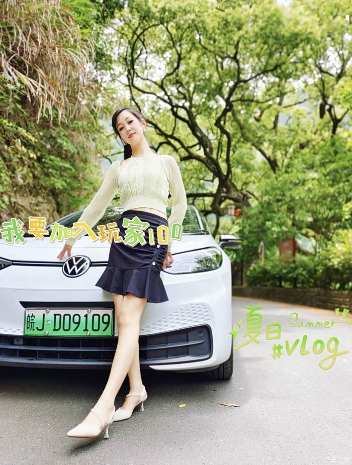 ✨这个夏天,阳光如炽热的音符,跳跃在生活的每一处角落。而我,自驾我的爱车——大众 ID.3,一同开启了一场用镜头书写的夏日故事,共赴一场光影之约,去解锁属于我的夏日高光时刻。拍摄当天,我精心挑选了一套清爽又个性的穿搭:一件青绿色的短上衣,简约而不失时尚,恰到好处地露出我纤细的腰肢,彰显着青春的活力与自信。下身搭配一条黑色荷叶花瓣小短裙,散发着小女人味与一丝洒脱。脚上踩着一双白色的高跟凉鞋,简约又清爽,每一步都仿佛带着夏日的轻快节奏(拍照时穿着,开车时换运动鞋)!