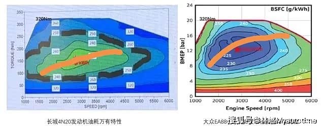 下图就是 21唐DM的发动机 万向图,其下游,就是主动打开废气旁通阀时的一个 下游的高效 甜心区