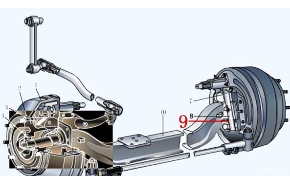 2)主销后倾角不对称造成跑偏。左右两轮之主销后倾角不相等超过30' (0.5°)时车辆出现跑偏,跑偏方向朝向主销后倾角较小的一侧。