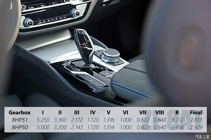 从之前的8HP50到今天的8HP51,工程师适度降低了主减速比,理论上是为了更好地照顾燃油经济性。与此同时,1挡、2挡和3挡齿比有所增加,于是前2个挡位的总传动比反而略微提高,以此保证中低速下的动力性能。官方数据也支持这一点,同样是530i,同样的发动机账面参数,B48TU+8HP51的0-100km/h加速时间比B48+8HP50快了0.1s。从4挡往上,8HP51的齿比几乎没有调整,2-3挡和3-4挡齿比落差比以前大了一些。通过这种方式,新的变速箱实现了更大的速比范围,从7.8增加到8.2。