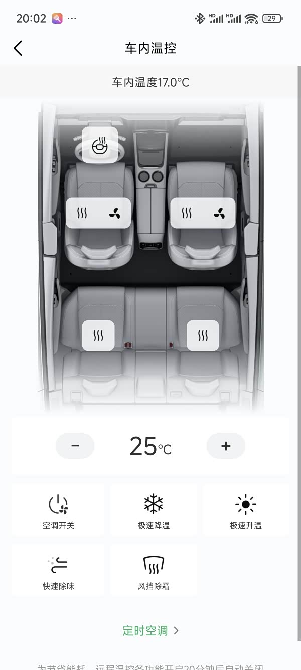 空调如何使用才能够省电呢?及空调做了温控分区。我们可以通过中控频来控制空调的开关,以及空调出风口的方向!主打一个哪里冷了去哪里?另外,如果有温度包的小伙伴们就更有福利了,上车前我们可以远程打开方向盘加热和座椅加热,上车后就非常暖和了,空调开到23度就足够用了!而且不仅前排有座椅加热,后排同时可以享受座椅带来的温暖!真的是冬季必备的神器!最后,冬季空调制热不需要打开AC,打开AC之后,空调会更加费电,主要用于制冷!大家可以尝试一下,打开AC和不开AC,空调温度调至24度的能耗还是有很大差距的!