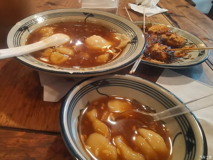 中午又回到街子古镇,找了一家老店张醪糟,就点了鸡蛋及红糖糍粑,(我属相猪儿,桌子上搞得像不像卷里啊)