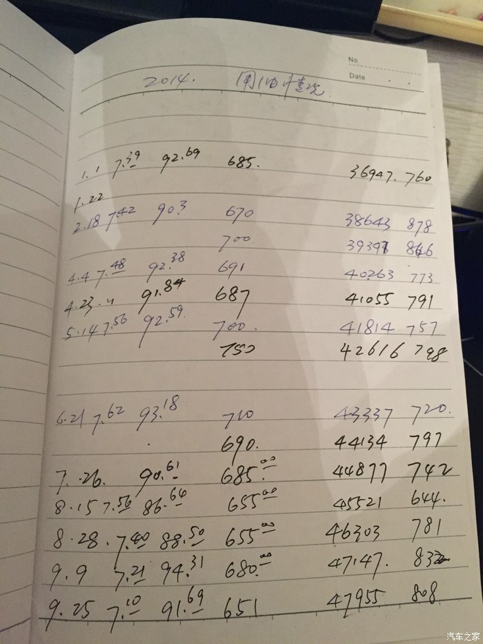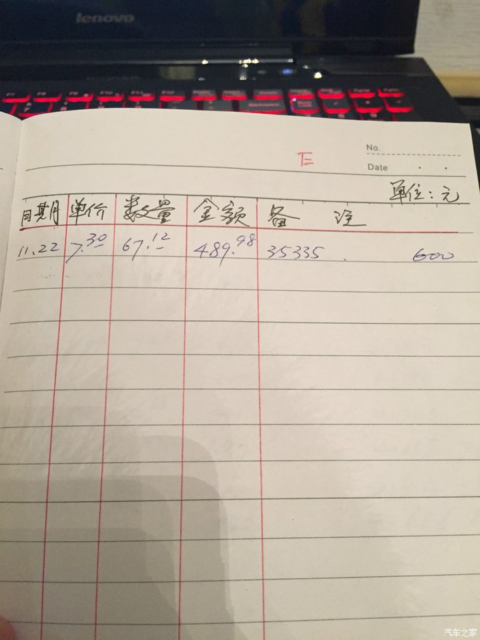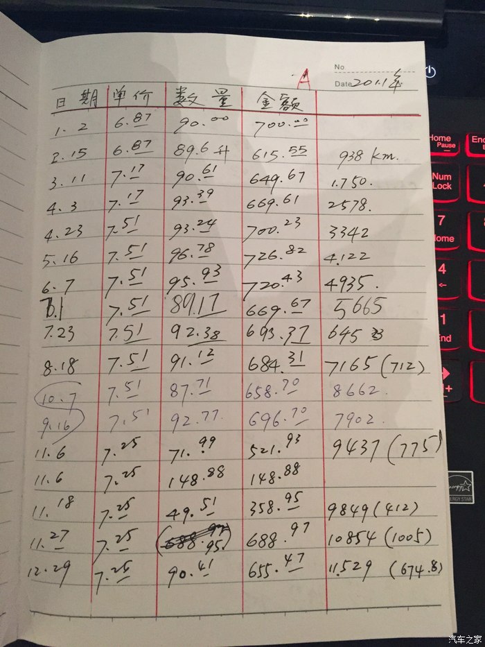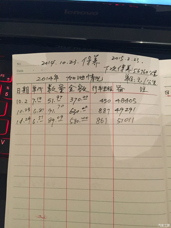 刚更新的用油情况(柴油,数量的单位是升,这些全部都是我老爸记录下来的)