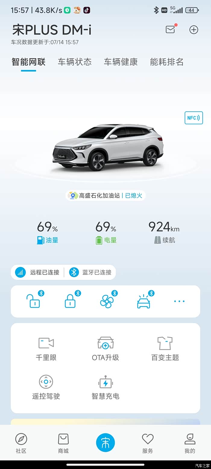 7月11更新,里程849,油77%,电64%。7月8日驻车发电60分钟,开空调,电量增加28%。