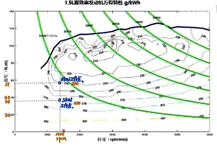 理论上行车中发电发动机转速更高,直接给电动机用也减少了冲入电池的损耗,受限条件,没能力测试行车发电效率。但可以通过两次实验的数据对比,上次660公里我的实际油耗为7.95l,均速16.33,这次油耗为7.76l,均速为16.58,在误差范围内其实是基本一致的,但这次都是纯电行驶,电耗为16.4度,那么是不是可以近似推算,上次660公里的油电转化为16.4/7.95=2.06,哪怕在加10%误差,也才2.26,距离驻车发电的2.48还有10%距离,所以我推算,在低速行驶中,行车发电效率也不超过2.5。