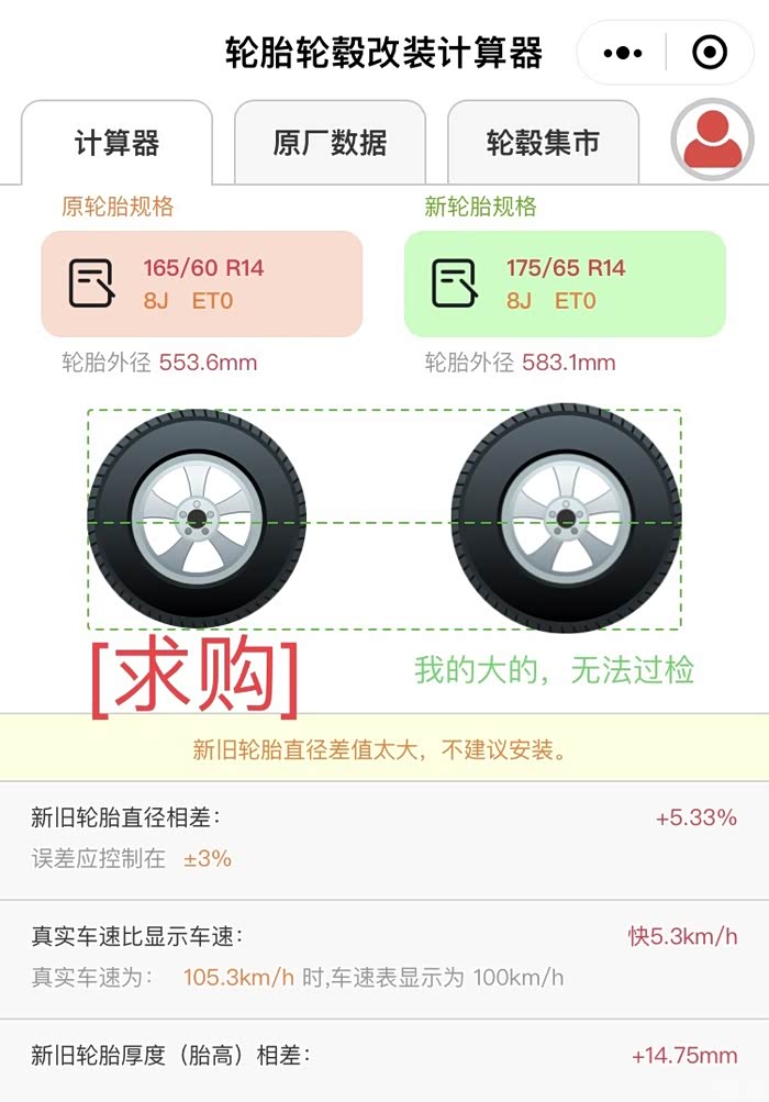 不过2023年小车面临第6年上线检测,0755深圳审车应该相对严格,175的轮胎估计审不过去。所以求助0755深圳的EC200/180车友——你的原装轮胎我借用一天来过审车,我的轮胎换给你随便开。
