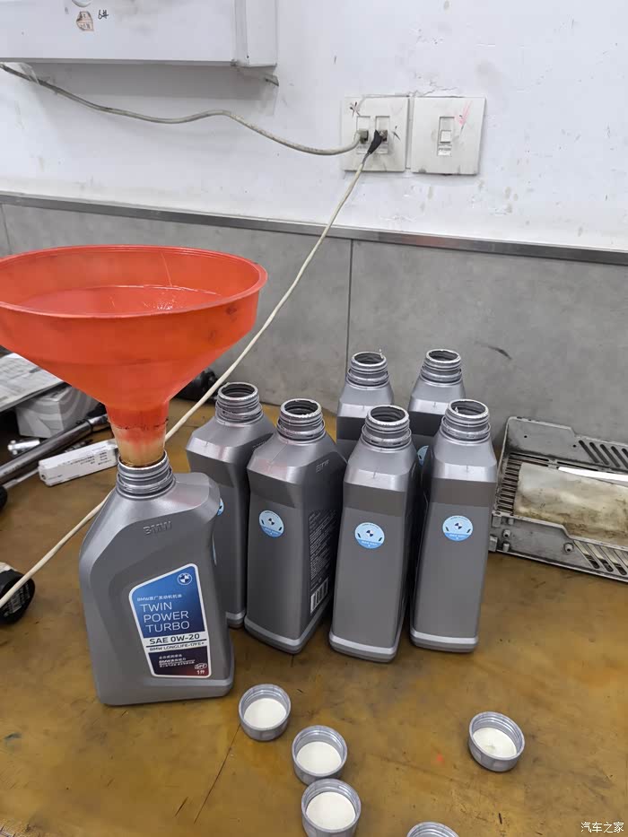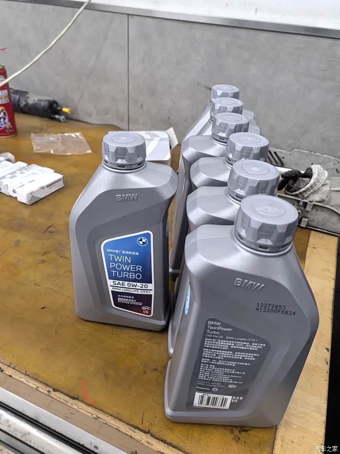 下面先更换机油机滤,6缸的B58发动机需要7瓶机油,大概用量6.75升。