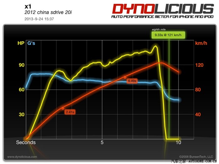 今天回家,突然想再测下0-100的加速,路面时铺装柏油路,有点点的斜度,两次是往返各一次,所以误差不到。测出成绩之后吓了一大跳,是测试软件出错了么?那个图的左面的马力值好像不对。。。求解啊!(TMC8档)