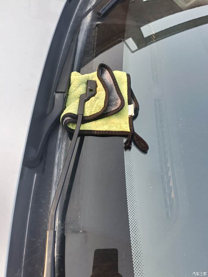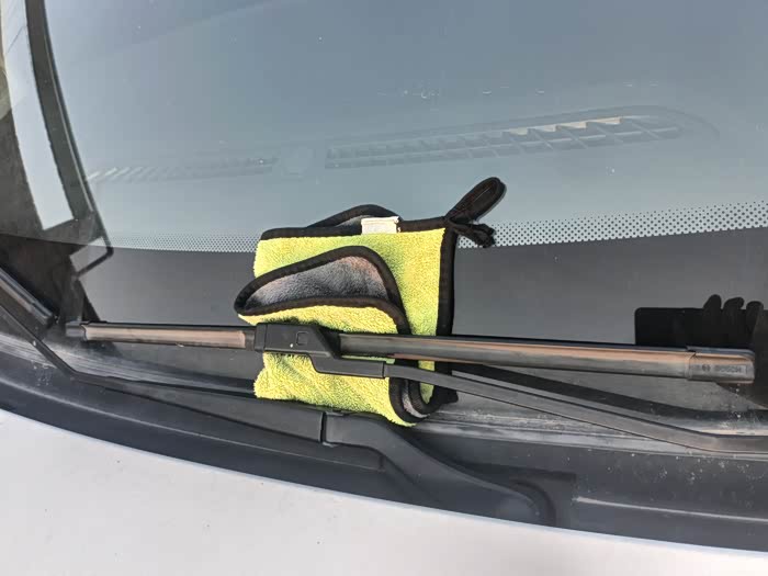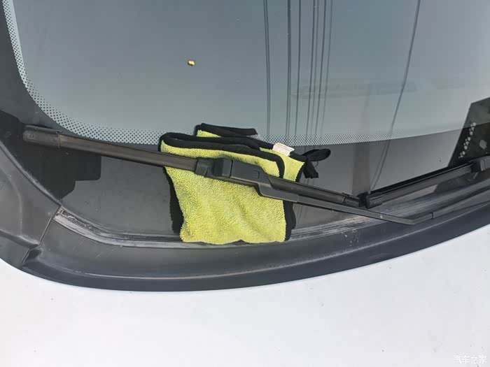 为了避免更换过程中失误操作导致雨刮臂跌落砸坏挡风玻璃,所以提前把毛巾放在对应位置后再进行下一步操作。