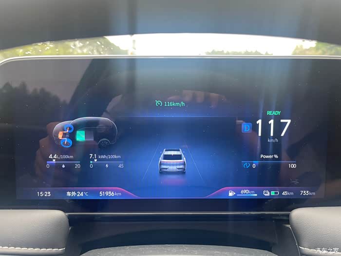 在出发深圳之前,按照惯例,我也会把大VDDI的纯电续航充满,从广州前往深圳华强北的路程大概是140公里,而大VDDI的纯电续航有110公里,而在高速行驶当中,经过我的长期实践纯电续航,大约打八折左右,因此本次前往深圳的路程有60公里是用混动模式行驶。