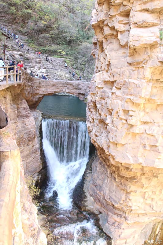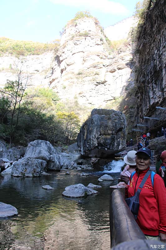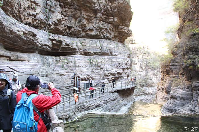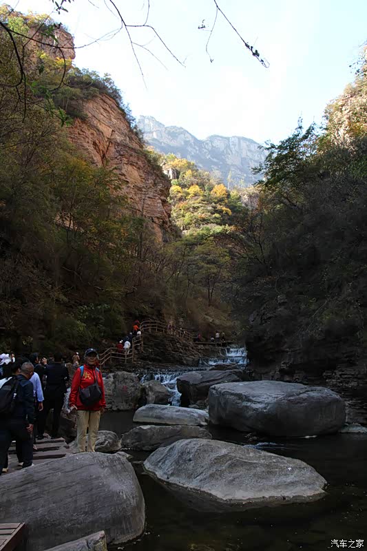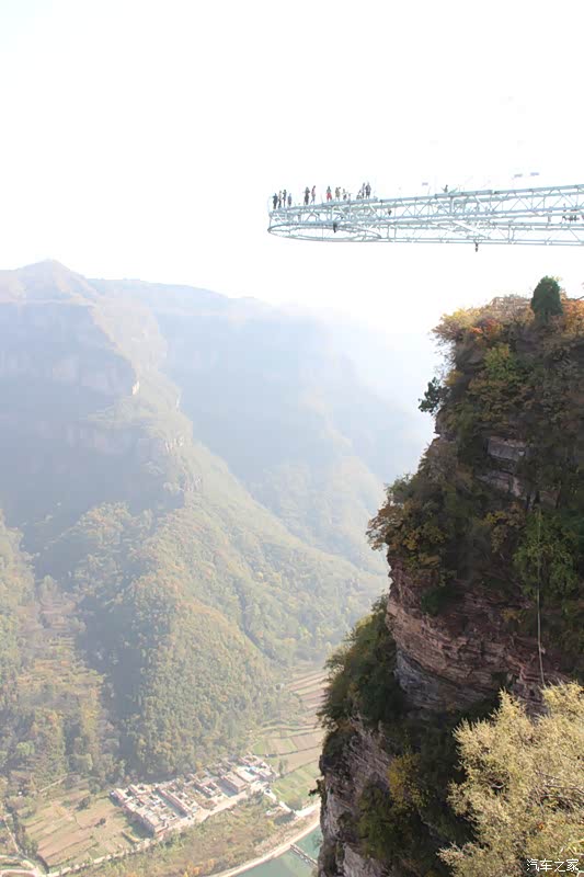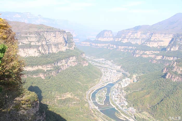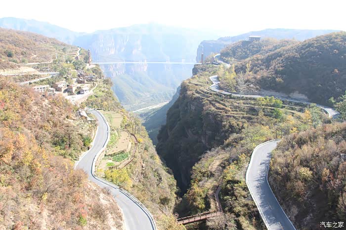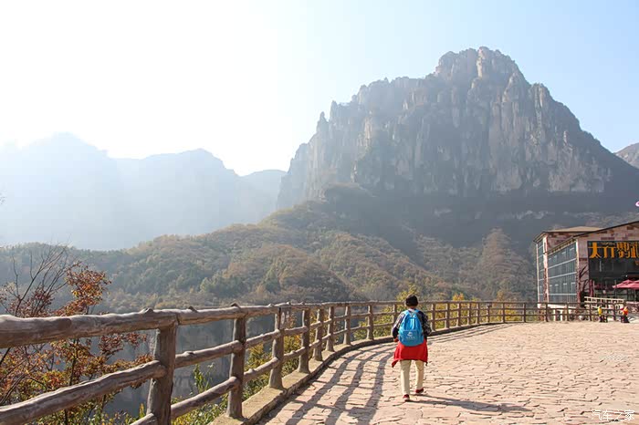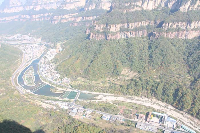 从高处走出峡谷,一路乘车走太行天路到天境观景台,步行到梦幻大峡谷,景色又是另一特色。俯瞰峡谷中河流村镇,远眺玉带一样的盘山公路和对面绝崖峭壁,近观太行民舍那波纹石屋顶,别有一番感受。