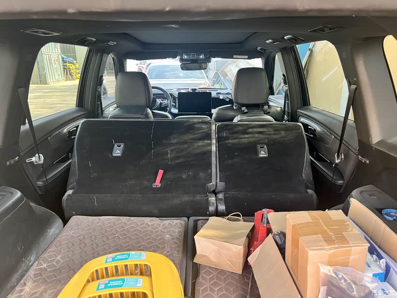 空间方面要着重讲一下,我这款是双擎七座版本的,在日常生活中,硕大的后备箱空间给我带来了非常多的便利和惊喜。平时把第三排放倒,就是一个非常大的五座车型。像我照片里后备箱即使放了特别多的东西,也不会显得很拥挤。特定使用场景下,第二排放倒,就是一张移动的舒适大床。