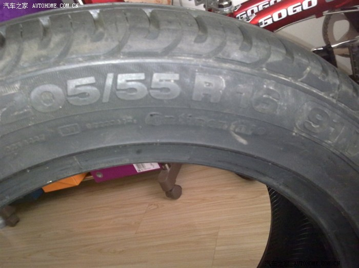 POLO原配的韩泰,去年冬天上路牙时,右前轮挤破了一小块,虽说没有漏气,但用起来已经很不放心了,出于保命的原因想换胎,在米胖子、倍耐力、固特异、马牌之间犹豫了很久,考虑到205/45 R16的胎都不便宜,想想还是换大胎吧,于是求助于万能的“淘宝”,以595每条的价格淘到了4条马牌205/55 R16的CPC,花了俺好多的大米呀