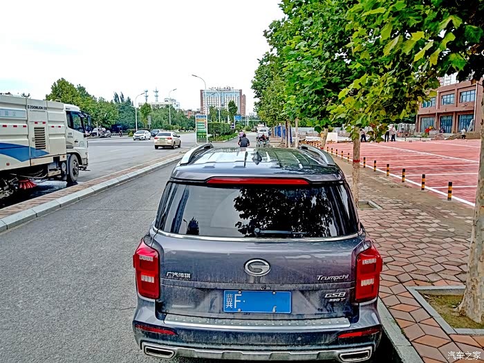 今天看天气不错,早晨起来开出小区,拍了点车的照片,车有几天没洗了,又赶上保定这几天下雨,大家凑活看吧,保定的绿化挺好的,后边是保定的万达广场,灰色的GS8车身耐脏,就算有泥点子也不是很明显,这个颜色咋说呢,比较深沉,适合低调的人选择,马路上这个颜色的车不多。之前有朋友私信了我一些问题,今天就来聊聊这台2020款的传祺GS8。