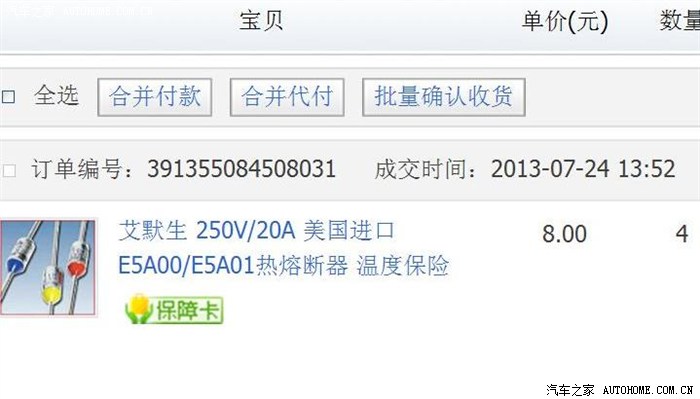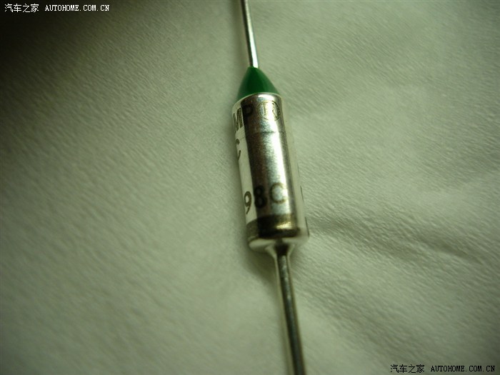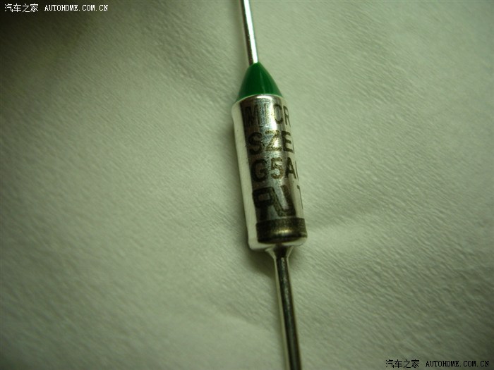 找到一个颜色(代表熔断温度---绿色98度)接近的,实测15A电流不熔断,临时装上应急...
