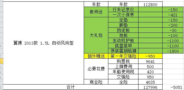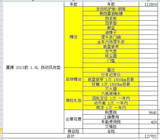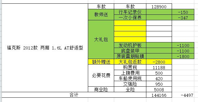 回家整理下资料吧,我一直就对翼搏情有独钟、一见钟情,别的车不是太贵,就是配置太差,各种上个年代的配置而且价格还比翼搏贵,像那个什么英朗,价格和福克斯差不多,结果配置都在那些豪华配件上,什么天窗、无钥匙启动、蓝牙啥的,实用的东西各种差,那些电子稳定、铝发动机、什么安全的东西,都没有,价格还高一大截,那就定翼搏吧。结果这时候家里出了点事情,出了一个月门,回来的时候很多时效性的优惠就没有了,只好继续砍,中间还陆陆续续的去了大众、丰田、标致神马的,可惜还是对翼搏一往情深,嗯,那就这个吧。