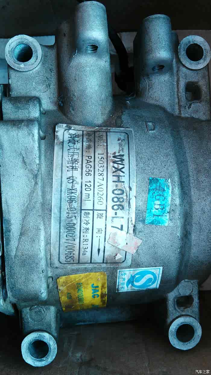 我来说说这压缩机内部结构,这种压缩叫斜盘式压缩机,内部有5各小活塞,五根连杆,外部是吸盘,皮带轮皮带轮内是轴承,轴承内是吸盘磁力线圈,当线圈得电后吸盘被吸进发动机带动压缩机工作,压缩机内部斜盘转动带动连杆推动活塞不断的做功制冷,这压缩机如果抱死的话有几种可能,第一连杆质量不好容易断,第二制冷剂泄漏导致冷冻油漏光,第三轴承爆开卡死,