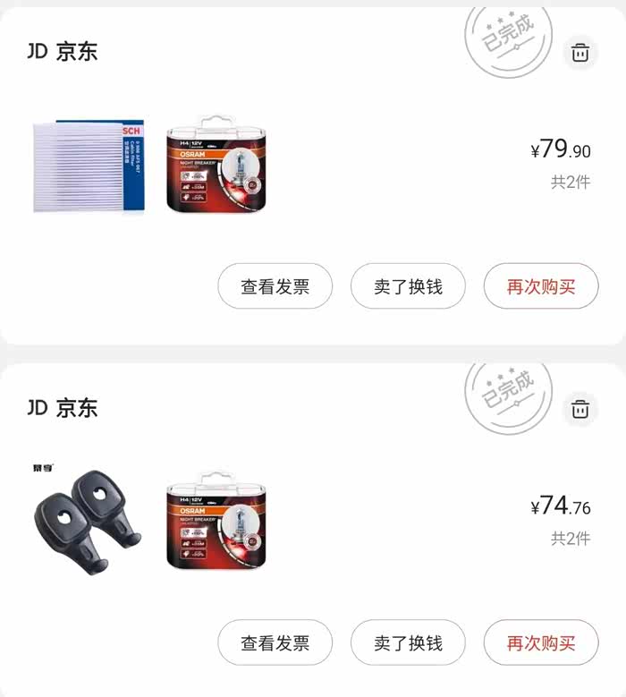 有个了一年多,欧司朗的也烧了一只近光灯丝(两个厂家是不是都算好的时间?)
