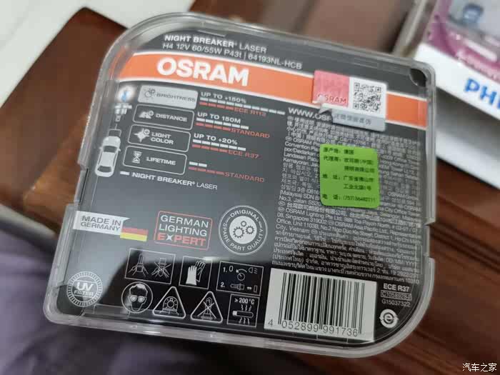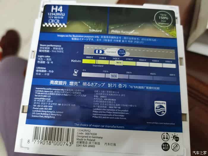 官方宣传增亮50%,嗯...个人觉得没有骗人。看来宣传这方面飞利浦要比欧司朗老实。