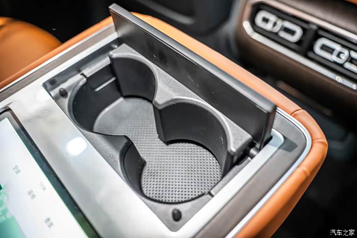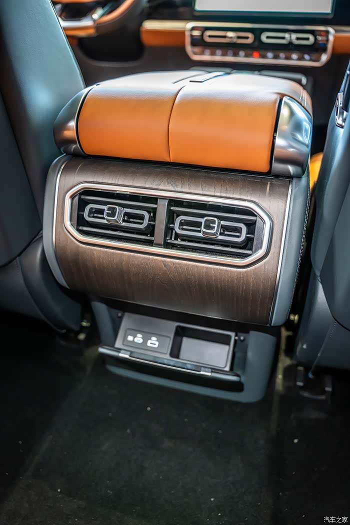 后排空调出风口,夏天吹风、冬天送暖。下方带有充电口和储物槽。