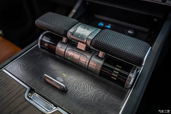 换档杆它的设计灵感来自于飞机的推力手柄,左侧可以调整车辆挡位,中间部分能调节悬挂高低,右侧还能快速更换驾驶模式。