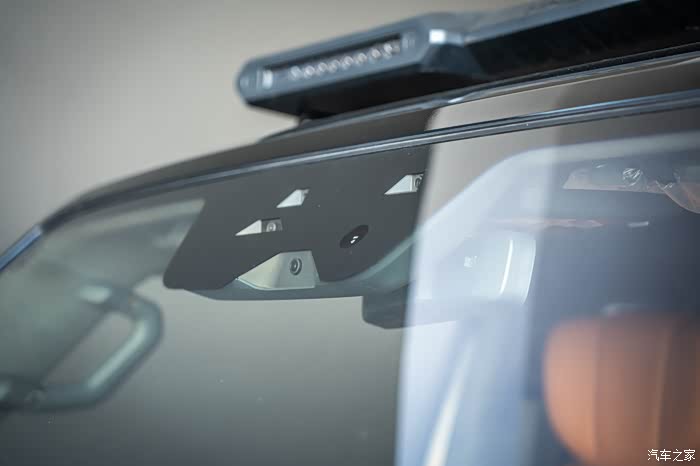 前挡风玻璃中间配备了三目感知摄像头,比二目还要强。