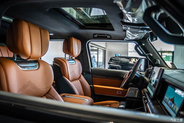 拉开车门,能够看到门槛上亮起的猛士字母LOGO,格外有豪华感。