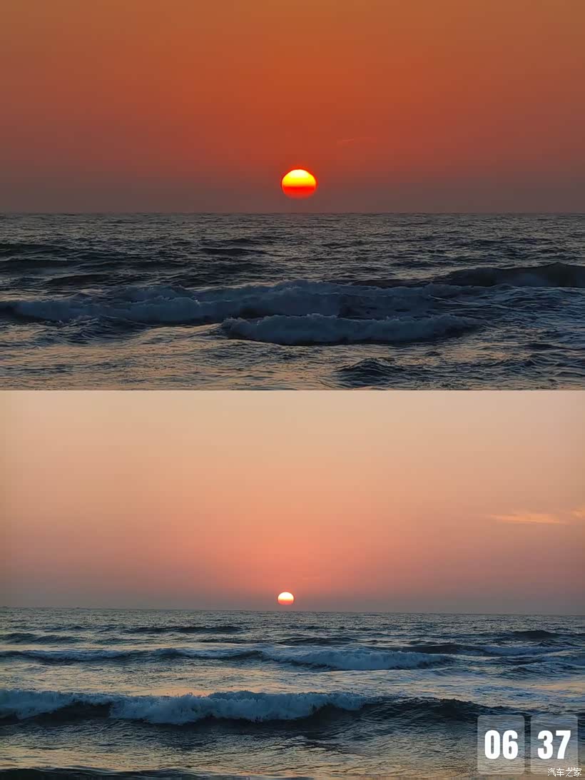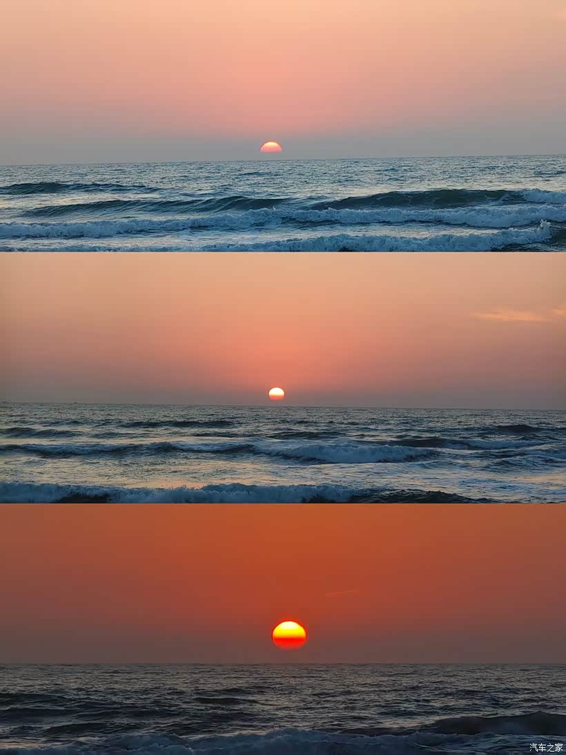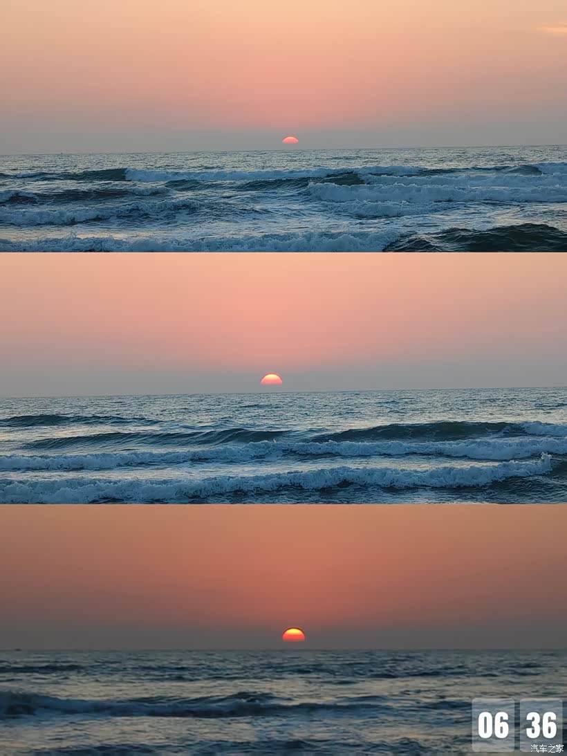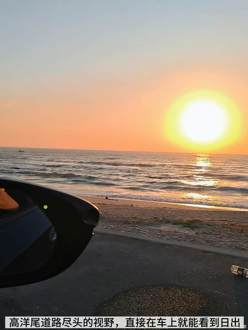 👉中间段从路边下去走到沙滩,是完全无任何遮挡的标准海上日出,最尾部公路是直接连着下面有一点沙滩和礁石,直接在公路上就能看到日出,还能拍到人和车和海上日出的合影,但视觉观赏日出就不是完全海天一线的,左侧有礁石会有一点点遮挡