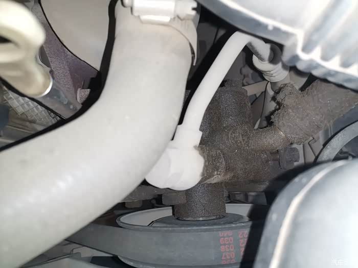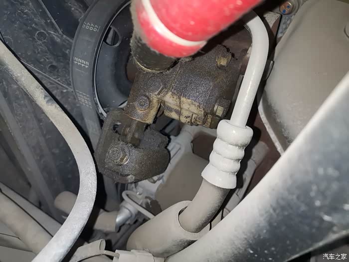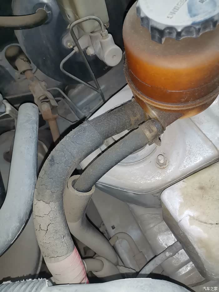 今早用车发现方向机油壶出来的管子有油渍,以前也有不多。可顺着管子看到下面这个应该是方向机泵我有油渍,方向机泵下面没有油渍,看了半天也没看到油是哪里渗出来的,难道是方向机油壶渗漏出来顺着管子渗漏到下面这个泵上的吗?谢谢