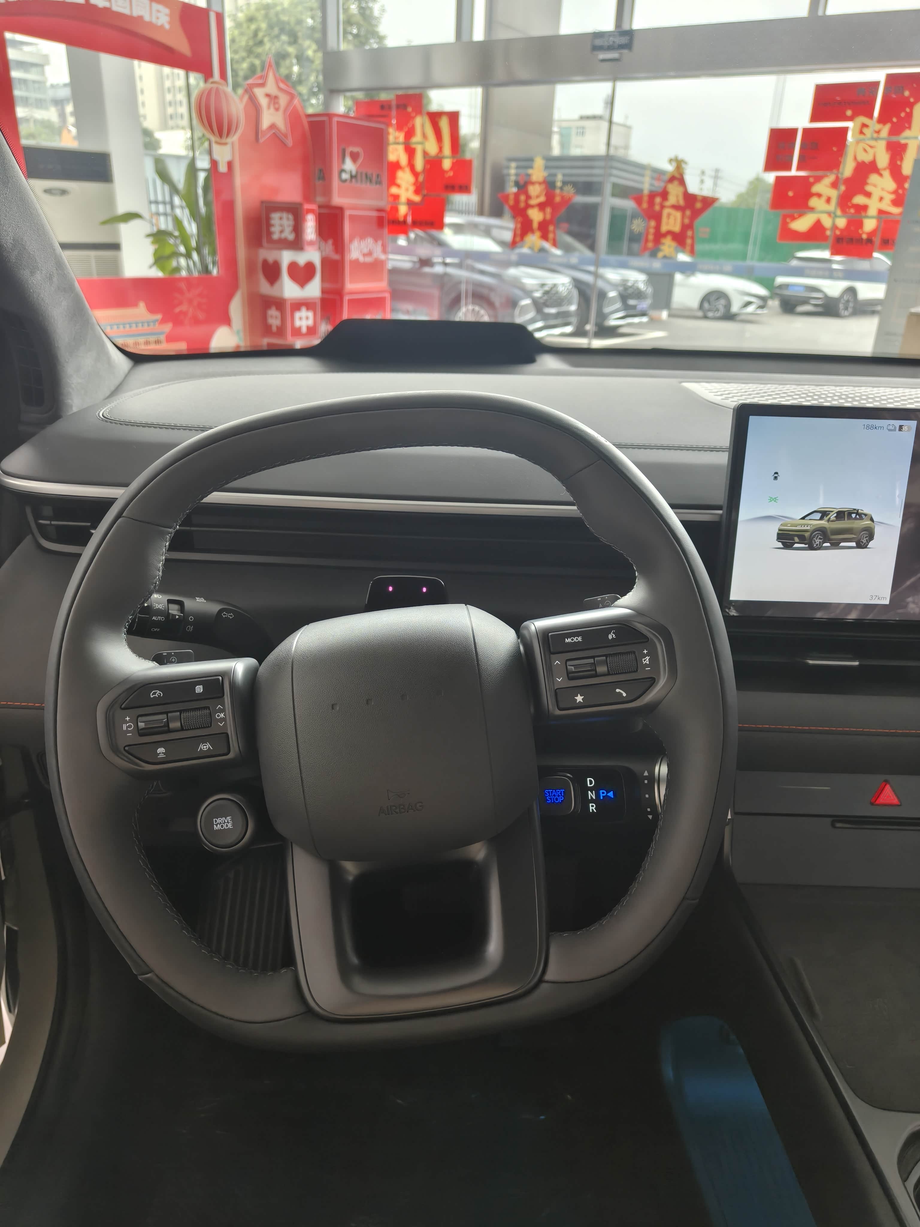 启动按键集成到了旋钮电子档杆上,要伸手从方向盘下掏着按,操作不方便,没有其它电车那么纯粹。