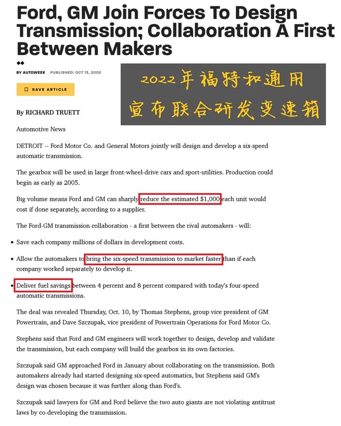 尽管查不到Ford和GM对那次合作项目的后评价,但是效果应该还是不错的,要不然就没有后续了。