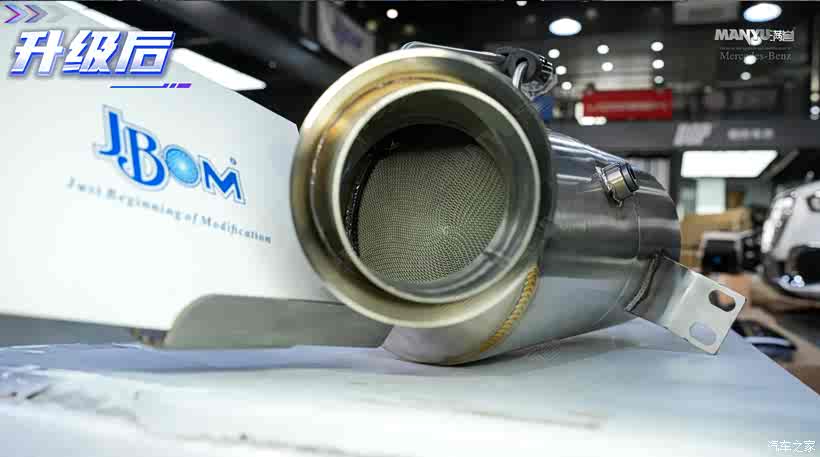 ▲ 原车头段里的三元催化器非常细密,高达1000目,这就好比给人戴上好几层厚口罩跑步,排气阻力极大。