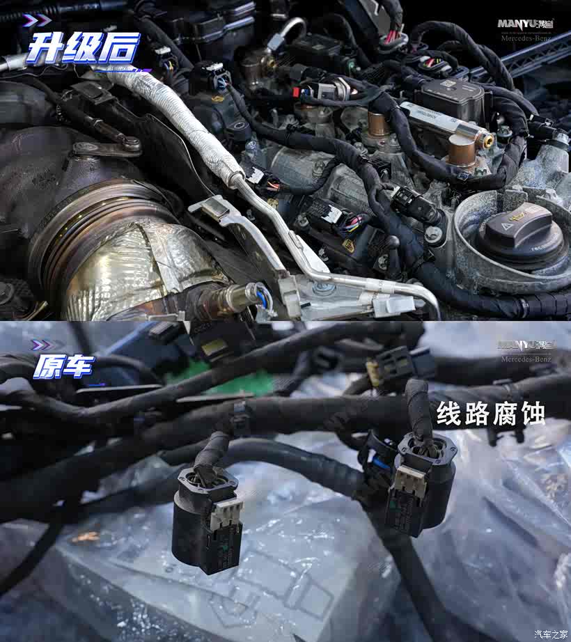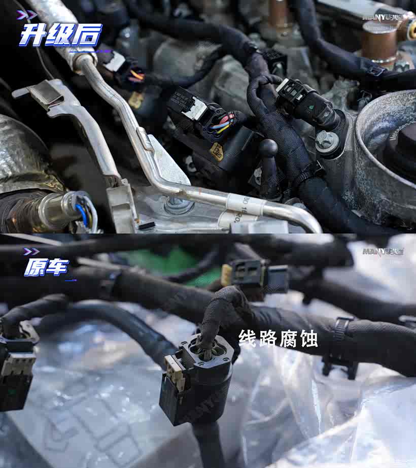 ▲ 改头段才了解到我们这辆车有一个通病,因为排气不通畅,导致发动机太高温而引起线束老化,还好这次发现得早,不然,烧了发动机模块就麻烦了。建议各位车主保养升级时叫师傅检查,及时更换,安全问题不能马虎!