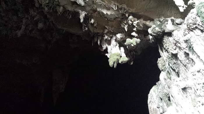 溶洞从入口到最里面大约300m左右,最高的地方约15m,没有人修路进去,全是起伏不平的石头。走进去几十米后就开始转弯然后就没有光线了,即使白天进去,人太少的话还是会觉得有点点怕怕的。