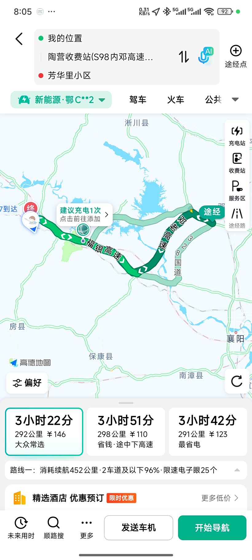 近期小区供暖,为了老家老人舒适过冬,便准备将家中奶奶从老家接到十堰。但考虑到要是一个人开车,路程太远,十堰到老家桐柏单趟距离近400公里,来回800公里,加上1小时充电,最低也得9-10个小时了。