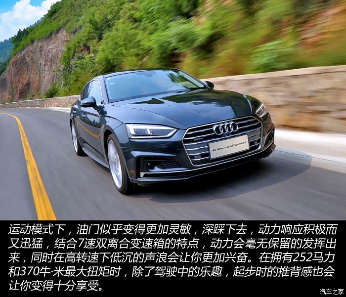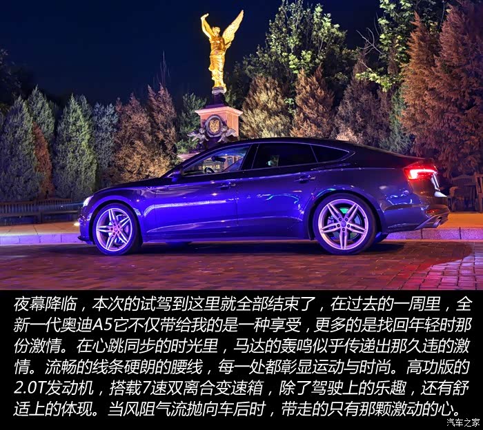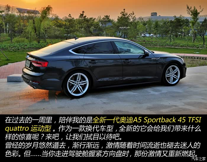 激情燃烧的岁月,心跳同步的时光,轰鸣的马达似乎正在传递那份久违的激情。在过去的一周里,当一款注重性能的车摆在你面前时,能否重新燃起那份久违的驾驶乐趣呢?全新一代奥迪A5在今年的六月份正式上市发布,作为一款全新换代车型,它似乎早有准备。搭载着2.0T高功版发动机与其匹配的是7速双离合变速箱,在数据上看拥有252马力和370牛·米最大扭矩时,0到100公里/小时加速只需6秒钟。全新第七代quattro四驱系统采用了冠状齿轮差速器,它不仅体积紧凑、重量轻,同时有着更高的动力分配比。