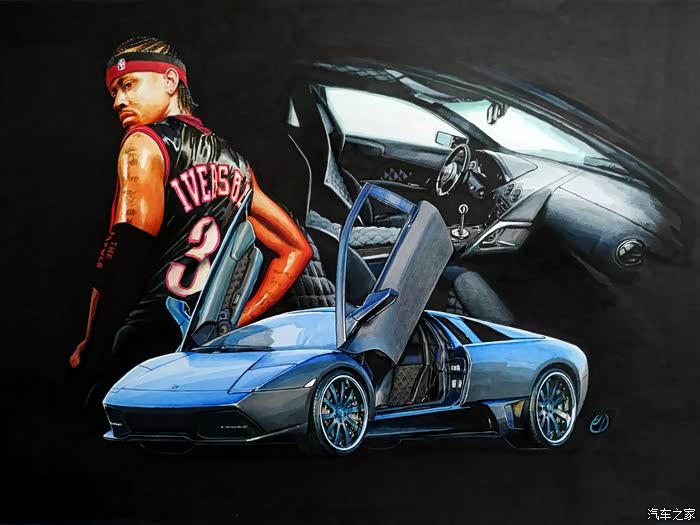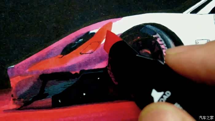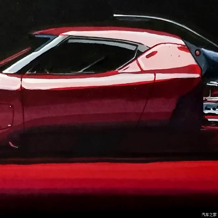 上图,是我的第一幅纯黑底色汽车手绘